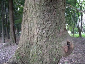 奄美以南に自生するスダジイは「イタジイ」「オキナワジイ」と呼ばれ、亜種とする場合がある(ssp. lutchuensis)。沖縄本島北部のやんばるの森は亜熱帯性照葉樹林だが、このイタジイ(スダジイ)が主構成樹で全体の70%を占めるという。こちらのイタジイの大木は、表土の薄い赤土国頭マージの上に根板を形成する。 |