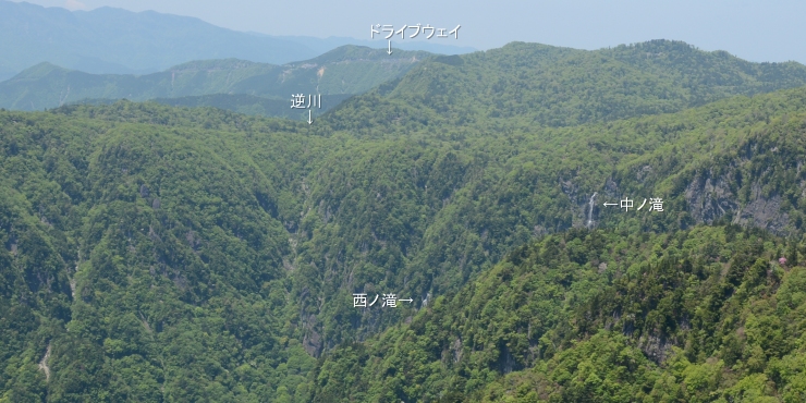 【中ノ谷〜七ツ池湿原】 「ナゴヤ谷」の名前の由来は、ナゴヤ岳(1610m)を源流とする渓流であることがその所以だろうか。また、七ツ池を越え開拓跡付近に流れる川を「ヤマト谷」というが、こちらもやはり大和岳(1597m)をその源流としている。ただ、七ツ池に至る途中にも、三津河落山(1620m)を水源とする 沢が流れているが、こちらは山の名はもらえず「中ノ谷」と命名されている。「ナゴヤ谷」と「ヤマト谷」の真ん中ということだろうか。この「中ノ谷」が「ナゴヤ谷」と合流した後の流れは、千石ーを飛び出し名瀑100選の「中ノ滝」となって姿を現す。滝の名前には「中ノ谷」の名が引き継がれているらしい。この滝は、大蛇ーからよく見えるが、その左手には「西ノ滝」も望める。こちらは「ヤマト谷」「高野谷」「ワサビ谷」が合流して「逆川」となり、「西ノ滝」に至っている。「中ノ滝」の右手には、「東ノ滝」というのもあり、シオカラ谷がその支流である。「東ノ滝」は、蒸籠ーをはじめ幾つもの山襞が影となっており、大蛇ーからは見えない。その音だけが聞こえてくるので「幻の滝」とも言われている。これら3つの滝の流れが合流して東ノ川となり、大蛇ーの眼下に一筋の流れとなって南下していく。 登山道とクロスする箇所の中ノ谷は、水量も少なく渡渉は容易い。中ノ谷を越え穏やかな峠にさしかかると、七ツ池の標識が見えてくる。七ツ池は、雨の後に現れる複数の湿原からネーミングされているようだが、現在、登山道沿いにそうした湿原は見られず、登山道から外れた森の奥深くに幻の湿原を想像するしかない。地図を拡げると、七ツ池辺りからドライブウェイは北上し登山道から大きく離れていく。したがって、緊急時には、ここからドライブウェイを目指すと辿り着くことができる。 七ツ池周辺には、防鹿柵も見て取れるが、ニホンジカの立入を拒んだ柵内の林床植物を観察してみよう。柵外のミヤマシキミ一辺倒の林床に対して、次世代の多種多様な広葉樹が繁茂している。ここ西大台にとっても、ニホンジカの食害は例外でないらしい。10月下旬の紅葉シーズンに歩いた時は、牡鹿の求愛ための鳴き声(ラッティングコール)が聞こえてきた。ニホンジカの発情期である。 開拓跡までの登山道沿いにはブナの巨木が多く、樹皮が桜の木に似たミズメ(別名:ヨグソミネバリ)もよく目にする。やがて、大和谷に近づいてくると、登山道と十字交差する木材搬出路跡が存在する。以前にレールを見つけたのでおそらくトロッコを使って搬出していたと思われるが、そのつもりで目を開いていないと通り過ぎてしまう。数メートル幅の整地されたトロッコ道跡が北へ南へと延びている。