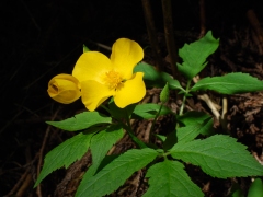 寺谷ルートは、その名の通り谷沿いに伸びており、こうした水場に近い環境は尾根道に比べて植生が豊かである。実際、ゴールデンウィークの頃に歩くと、ヤマブキソウやニリンソウ、クリンソウ、ショウジョウバカマ、ヒトリシズカなどの花が微笑んでくれる。ヤマブキソウやニリンソウは、カトラ谷ほどの賑わいではないが、クリンソウが木道階段に沿って行儀よく並んでいる。人の手が加わった感が否めないが、誰の目にもつきカメラに収めやすい。9月頃に歩くと、今度は、ヒヨドリバナ、ミカエリソウ、ヤマホトトギス、イヌショウマなど秋の花が彩りを添える。