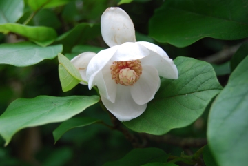 この合流点から聖宝ノ宿跡まで尾根筋は、大きな起伏もなく快適な1時間となる。ここにはシロヤシオが多く、標高1600mの弁天の森東斜面では、最初のトウヒ林が迎えてくれる。途中大きな洞をもったシナノキに出くわすが、ツキノワグマが冬眠する際はこうした木を利用するのだろうか。オオヤマレンゲの開花にあわせて登る7月初旬では、ギンリョウソウやショウキラン、バイケイソウ